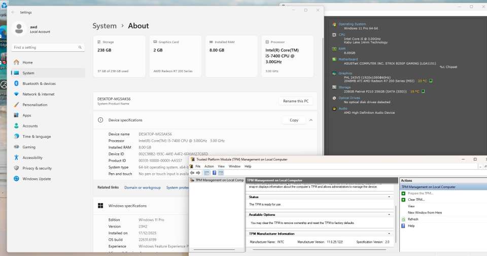 Intel i5 7400 Radeon R7 200 Windows 11 Pro